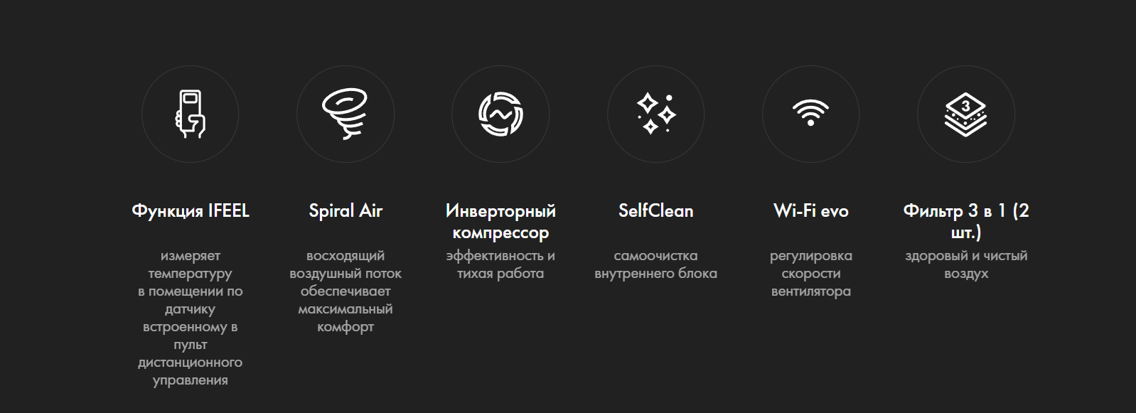 - Управление по Wi-Fi: возможность дистанционного контроля и настройки параметров работы кондиционера через мобильное приложение.