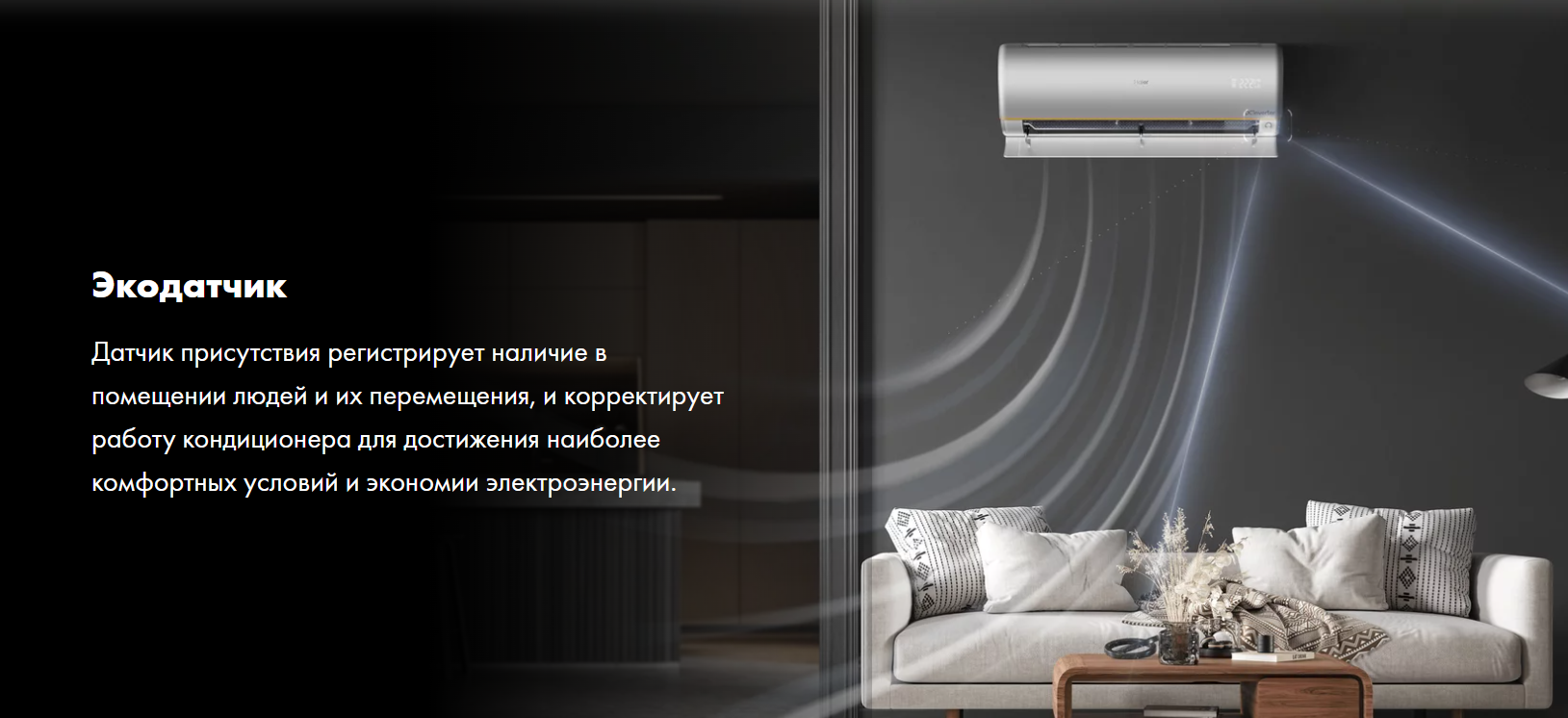 При помощи датчика присутствия регистрируется наличие людей в помещении и их передвижение, в соответствии с чем работа кондиционера автоматически адаптируется под создание наиболее комфортных условий для человека. Датчик света системы Ecopilot контролирует уменьшение освещенности в помещении и в зависимости от этого система корректирует уставку температуры для обеспечения энергосбережения.